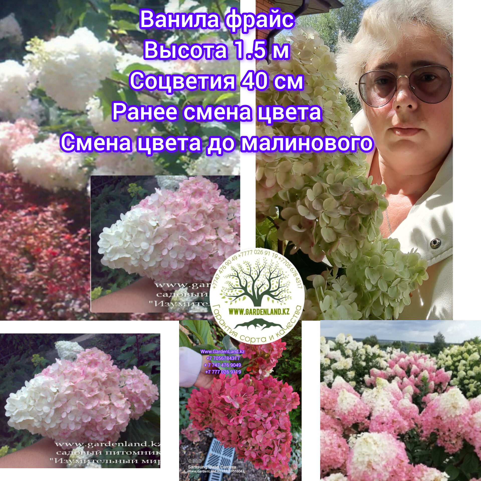 которые меняют цвет с белого на насыщенный рубиново-малиновый с июля до осени, отлично держит форму и устойчива к болезням